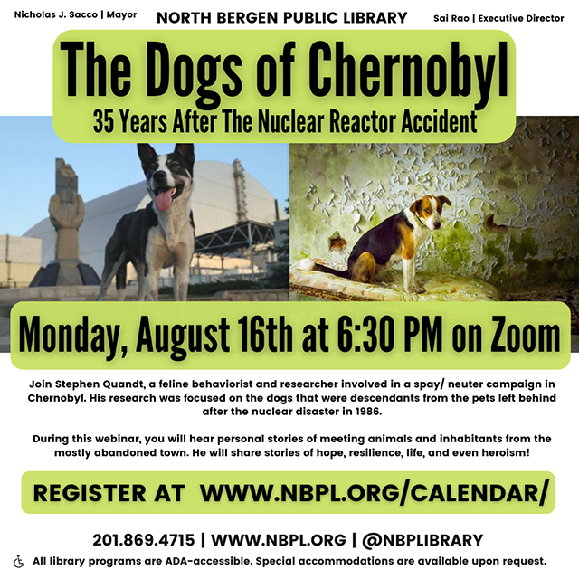 Posted August 13, 2021Join Stephen Quandt, a feline behaviorist and researcher involved in a spay/neuter campaign in Chernobyl, for “The Dogs of Chernobyl: 35 Years After the Nuclear Reactor Accident” on Zoom at 6:30 p.m. on Monday, Aug. 16, 2021.