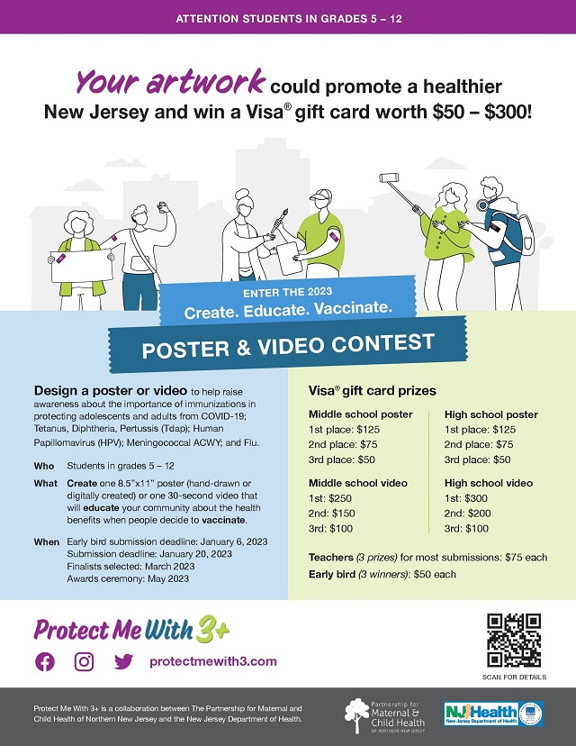 The top three posters and videos will be featured at statewide immunization awareness events and will receive prizes including visa cards worth $50 to $300.