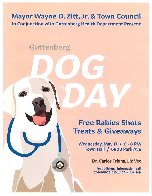 Posted May 15, 2023Mayor Wayne Zitt and the Town Council in conjunction with the Guttenberg Health Department are once again making free rabies shots available for pets of residents.
