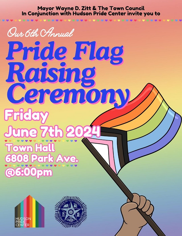 Posted June 03, 2024Guttenberg is pleased to once again host the annual Pride Flag-Raising Ceremony at 6 p.m. on Friday, June 7 in front of Town Hall, 6808 Park Ave.