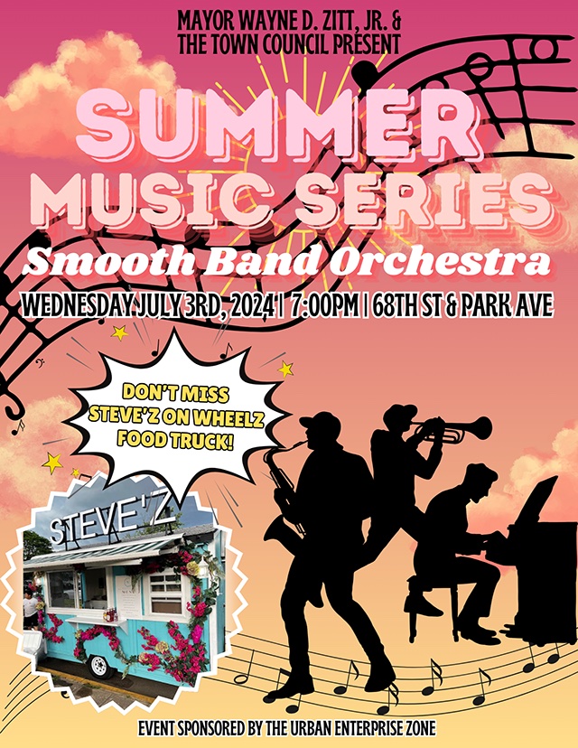 Posted June 28, 2024Independence Day starts early in Guttenberg with a free concert on Wednesday night, Jul. 3, 2024 featuring the fabulous Smooth Band Orchestra. This second concert in Guttenberg’s Summer Music Series will take place at 7 p.m. on the big stage at 68th Street and Park Avenue, with plenty of seating for residents.