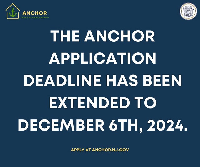 Posted November 22, 2024The deadline to file for the Affordable New Jersey Communities for Homeowners and Renters (ANCHOR) property tax relief program has been extended to Dec. 6.
