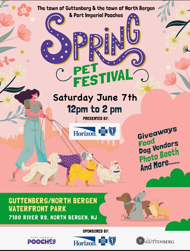 The fun begins at noon and continues until 2 p.m. Presented by the Town of Guttenberg, the Township of North Bergen, and Port Imperial Pets in collaboration with Horizon Blue Cross Blue Shield, it’s the season’s biggest puppy party.