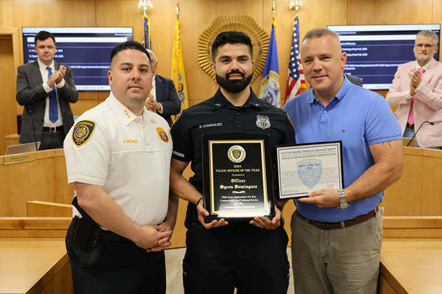 Posted June 26, 2025The Guttenberg Police Department’s Command Staff has presented Officer Byron Dominguez with the agency’s “Officer of the Year” award for 2024.