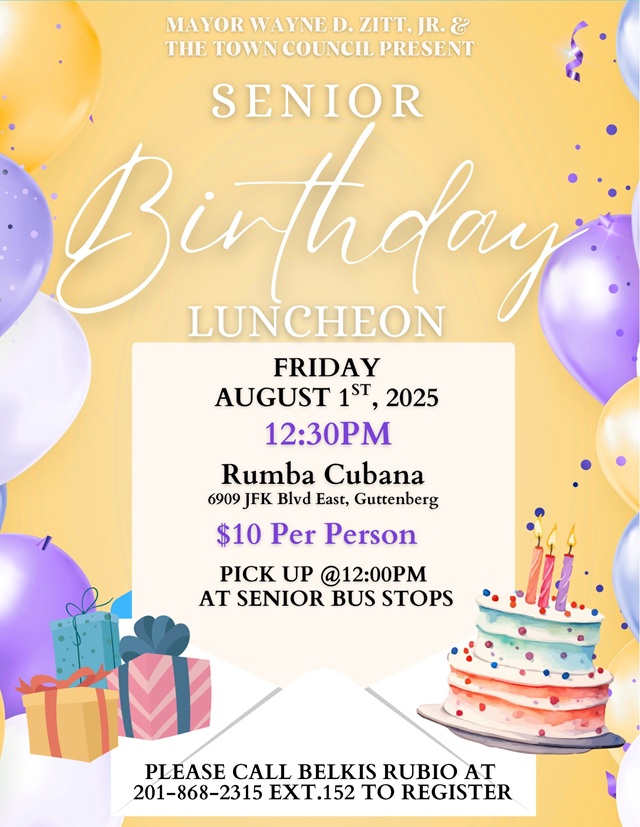 Posted July 30, 2025Mayor Wayne Zitt and the Town Council invite senior residents to register for the monthly Birthday Luncheon in August.