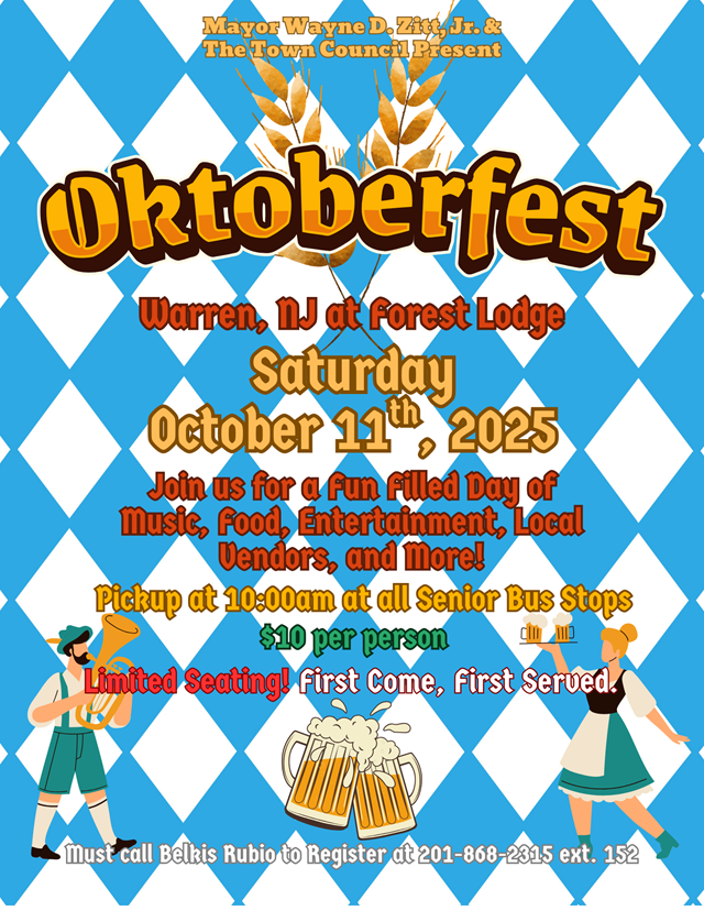 Posted October 03, 2025Guttenberg seniors are invited to sign up for a trip to the annual Oktoberfest celebration at Forest Lodge in Warren, NJ on Saturday, Oct. 11.