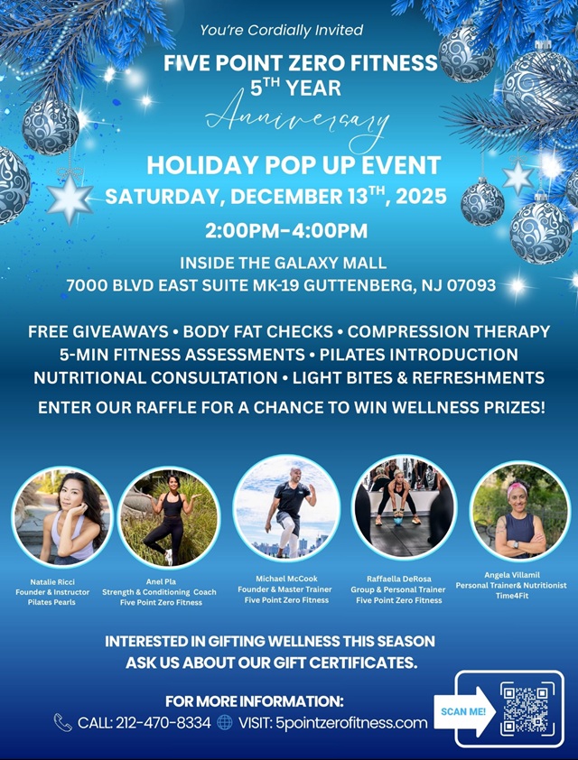 Posted December 11, 2025To celebrate their fifth anniversary, Five Point Zero Fitness is hosting a pop-up event from 2 to 4 p.m. on Saturday, Dec. 13.