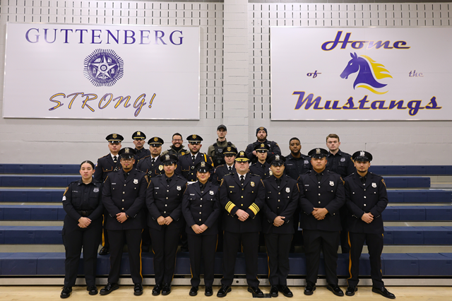 Chief Frank Pelaez congratulated the newly promoted and sworn-in officers and extended his appreciation to Mayor Zitt and the Town Council for their ongoing support of the Guttenberg Police Department.