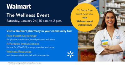 Walmart Offering Free Health Services at Wellness Event on Jan. 24